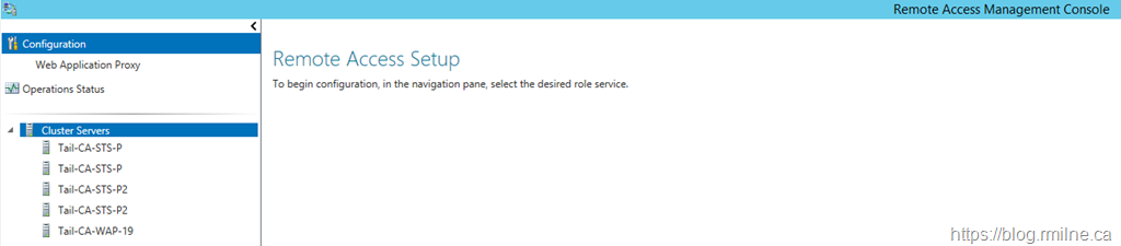 Only two WAP servers are actually meant to be in the list, so we specify them in using Set-WebApplicationProxyConfiguration.