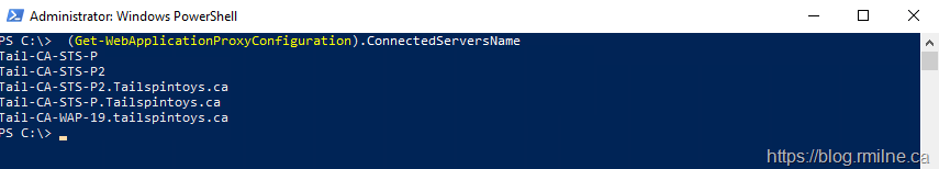 (Get-WebApplicationProxyConfiguration).ConnectedServersName