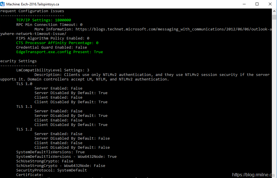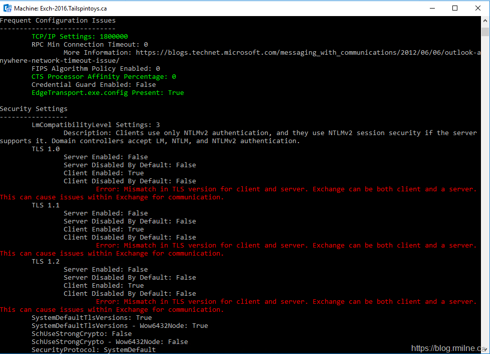 This post will look at a case where the Exchange Health Check script detected issues with how TLS was configured on an Exchange server.  This was in part due to an ancient and already depreciated version of the 3rd party tool being used.