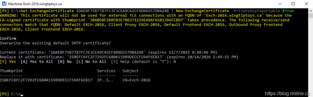 Renewing Exchange 2016 Self Signed Certificate Using Pipeline