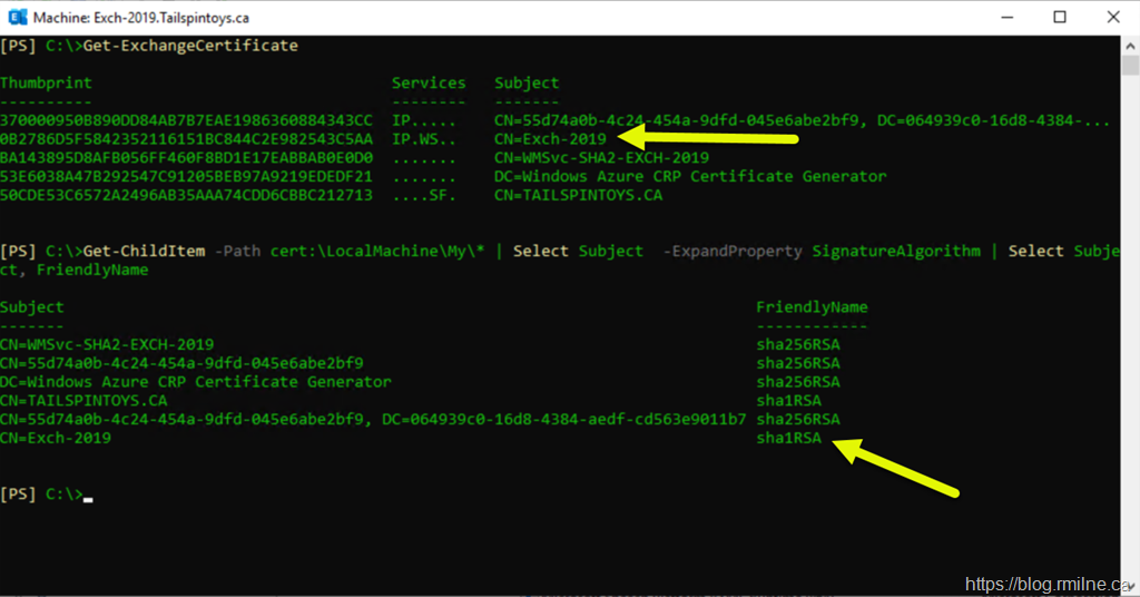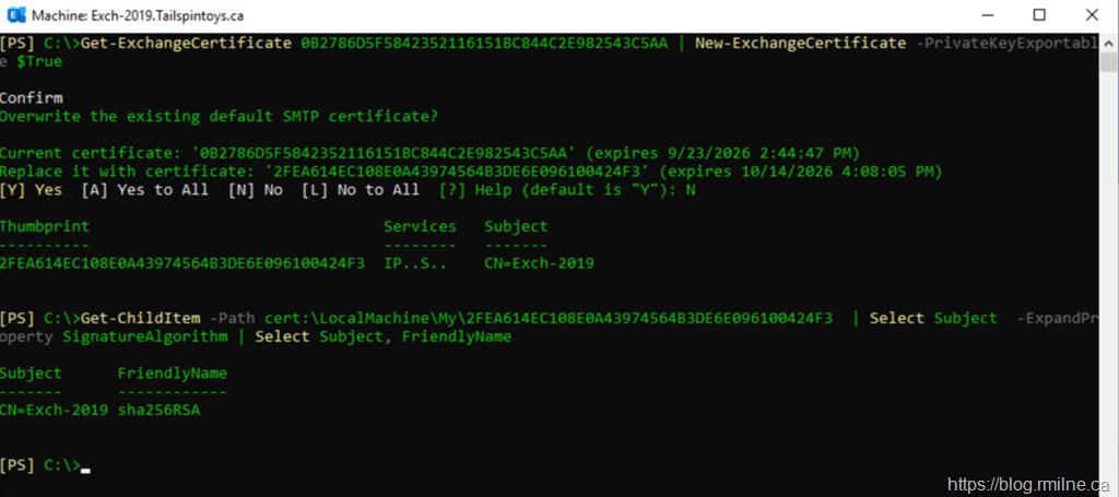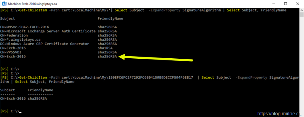 As you can see, piping a SHA1 cert to the cmdlet still results in a SHA2.