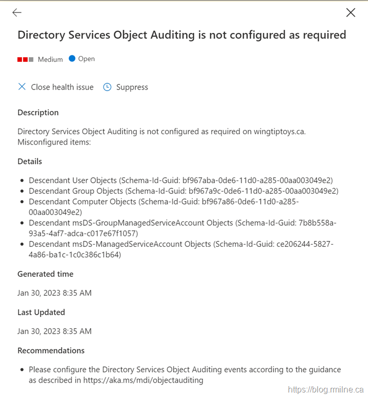 But the Directory Services auditing is more complicated. What exactly did I do wrong to anger the MDI gods, and what exactly do I need to fix?