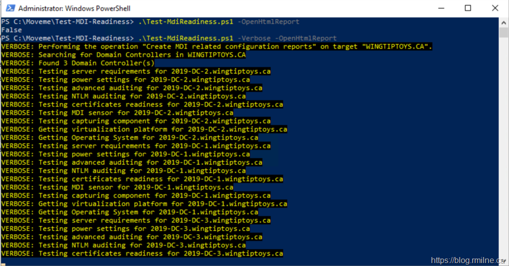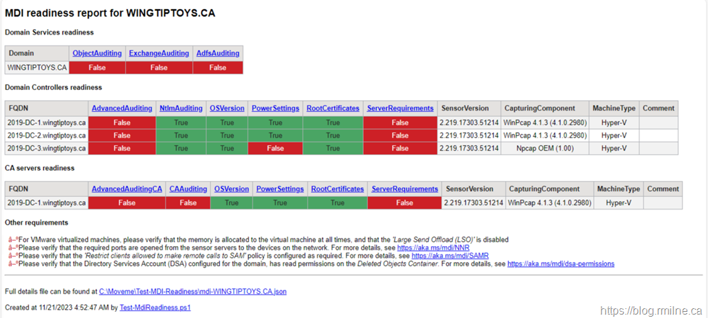 Once downloaded we can run Test-MdiReadiness.ps1 to query the local environment.