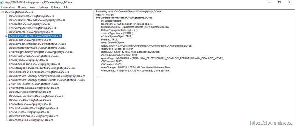 - To verify that the Deleted Objects container is displayed: