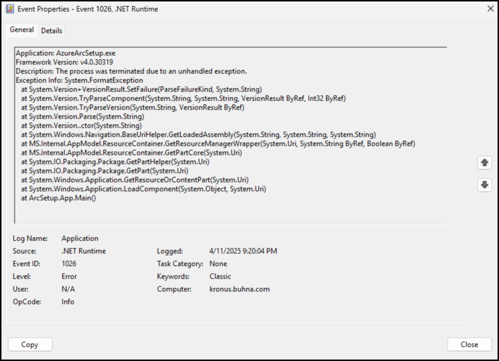 image.png Published 12th April 2025 at 1030 × 745 in AzureArcSetup.exe Crashes On Windows Server 2025 Previous Next